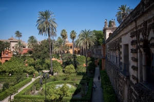 Hinter dem Gebäude befinden sich die ausgedehnten Gärten des Alcazars, in dem sich zahlreiche Springbrunnen, Wasserflächen und ein kleiner Irrgarten befinden. Nicht ohne Grund haben die Location Scouts von Game of Thrones diese Anlage als die Wassergärten des Palastes von Dorne auserkoren. Wer sich einige Szenen aus der Serie anschaut, wird sehr schnell den Garten erkennen.